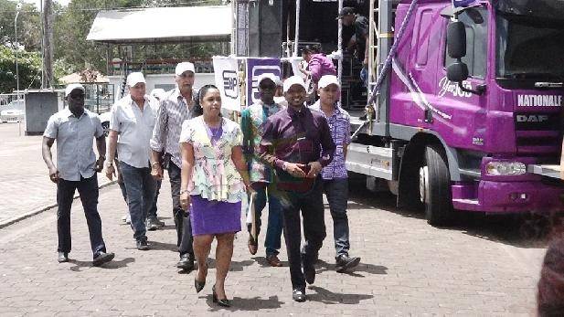 Duiven, gebeden, zang, honderden aanhangers, sound battles. Vrijdag hebben de NDP, PALU, ABOP, HVB, DOE en A20 zich geregistreerd voor deelname aan de verkiezingen van 25 mei. Een deel van het hoofdbestuur van de NDP is met een enkele paarse soundtruck naar het Centraal Hoofdstembureau (CHS) getogen om zich te registreren. Tot nu toe hebben 11 politieke partijen zich officieel aangemeld voor de verkiezingsstrijd. Vandaag is de laatste dag voor registratie. Nog 7 partijen hebben afspraken voor de registratie.